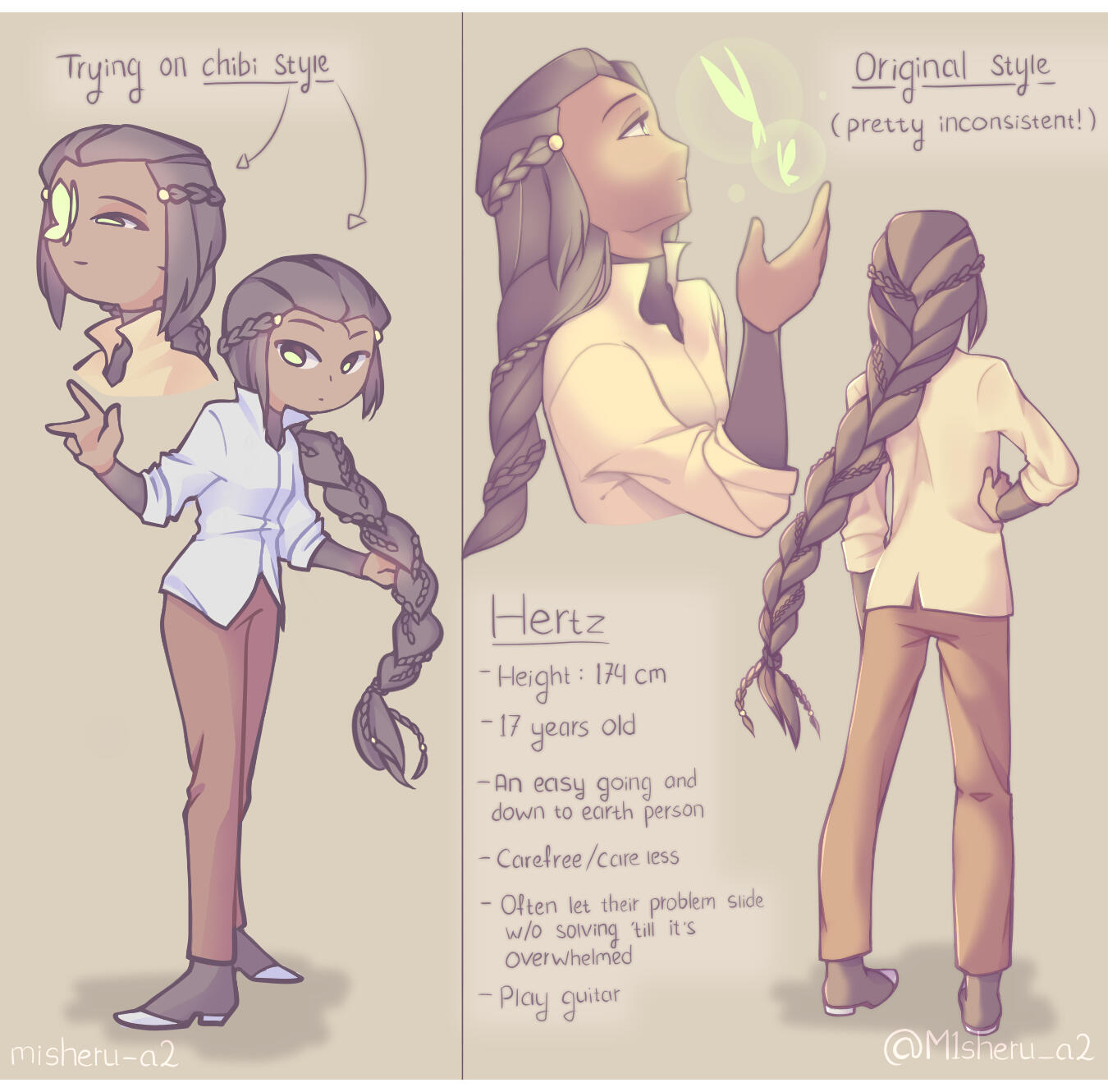 In their original world, they have a little sister, they both came from a struggling family. Hertz worked all sorts of jobs left and right in order to support their family and pay for their sister's education.Hertz had long dropped out of school in order to work jobs and help their family financial needs. They always dream of one day to be able to get back in school and experience an ordinary school life like other kids their age (In which they did but not in a way they expected it to be)One fateful day, a horse-drawn carriage hit them while on their way home after performing on the street. This led them to be transported into twisted wonderland as the yuu in the storyline.The impact from the hit caused them to lost their memory temporarily but thankfully they managed to regain them back later on.Though, as they do, the guilt and fear from abandoning their family for so long in the original world with no way to return constantly haunts them. Also the fact that they genuinely enjoy their life here in twisted wonderland added more to that guilt.